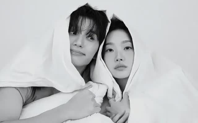 而整组画报最动人的,莫过于两人之间自然流淌的 CP 感与情绪张力。相拥的画面里,金载原从身后轻拥金高银,下颌轻抵发顶,她则放松地倚在对方怀中,眉眼舒展,满是安心与温柔,无需过多的肢体接触,就把情侣间的依赖与亲密尽数展现;